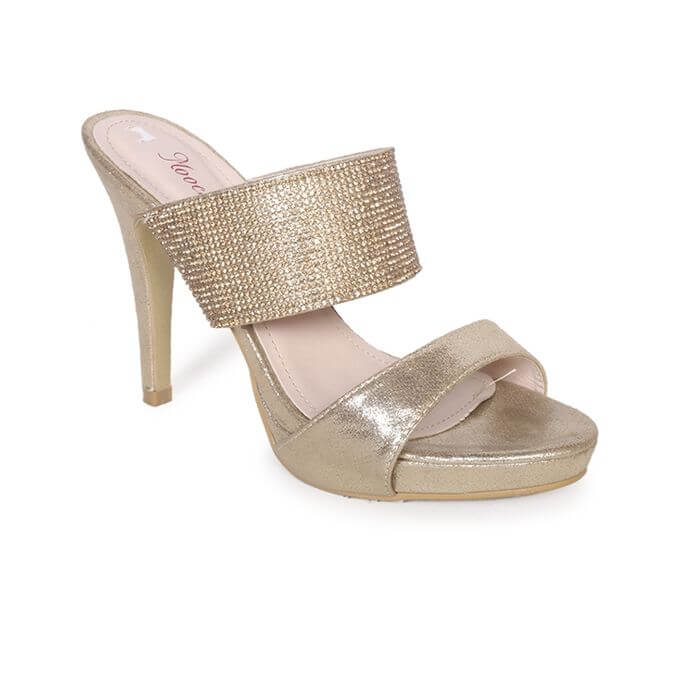 Gold Leather High Heel For Women