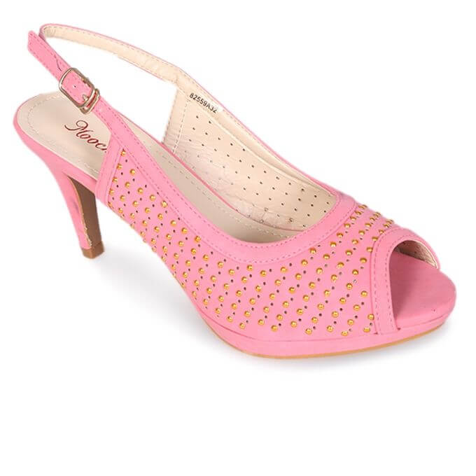 Pink Leather Heeled Sandal For Women